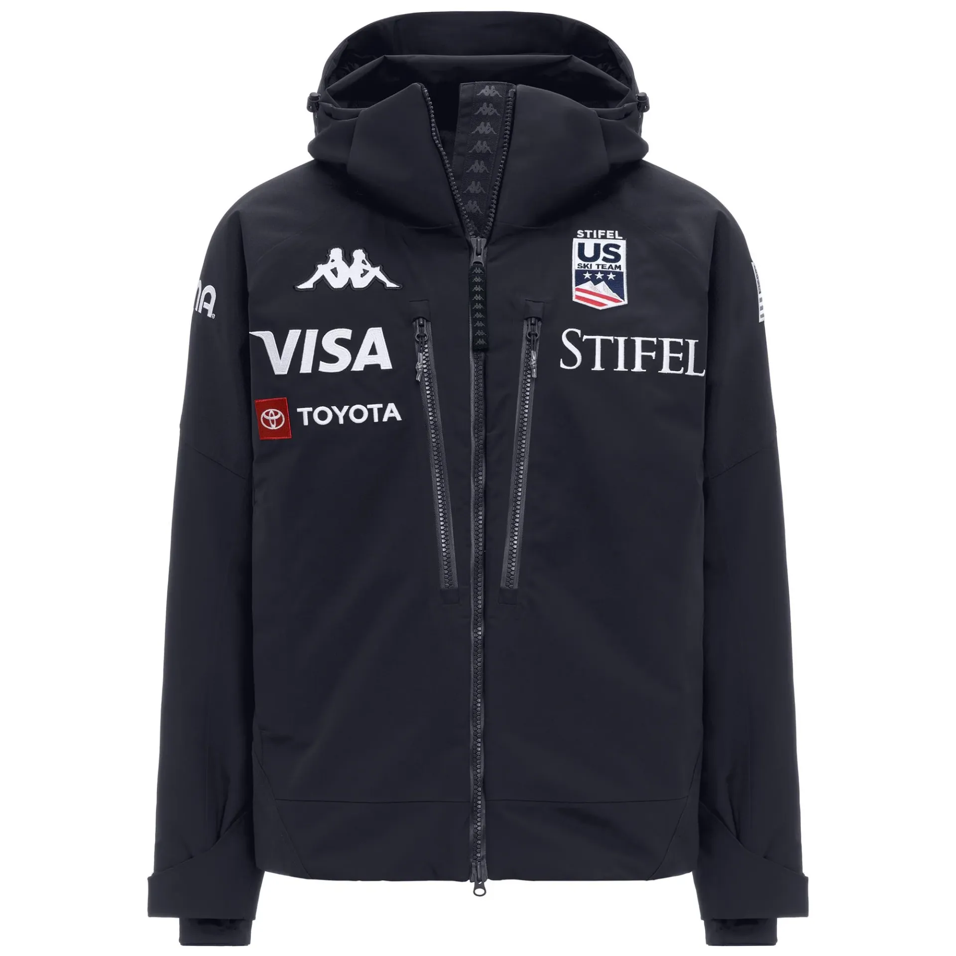 Dettagli distintivi includono logo Omini e personalizzazioni US Ski and Snowboard Team.