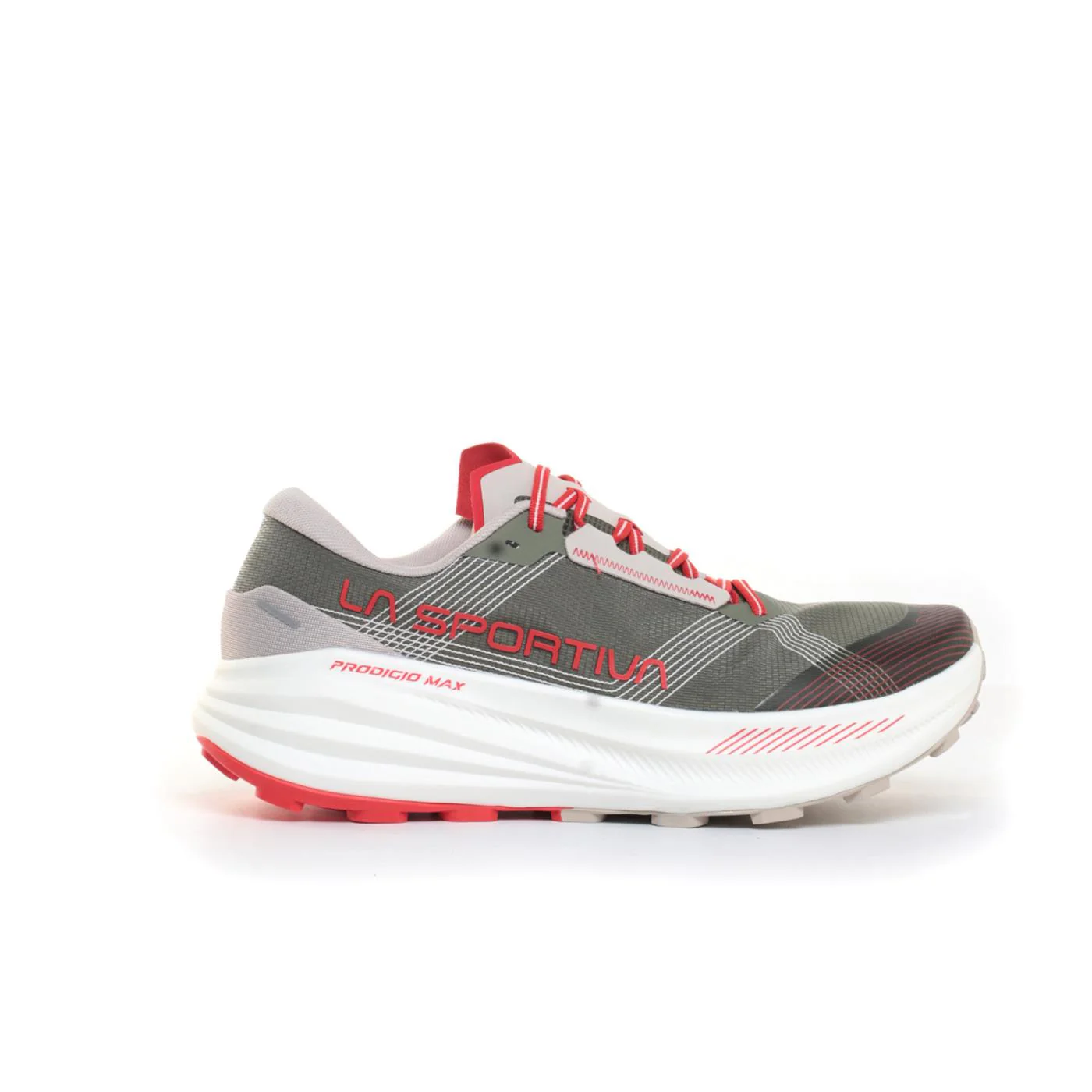 La Prodigio Max è la scarpa da trail running La Sportiva pensata per le lunghe distanze e le ultra trail. Massima ammortizzazione, comfort e protezione si uniscono in un modello leggero e reattivo, capace di sostenerti anche dopo molti chilometri.