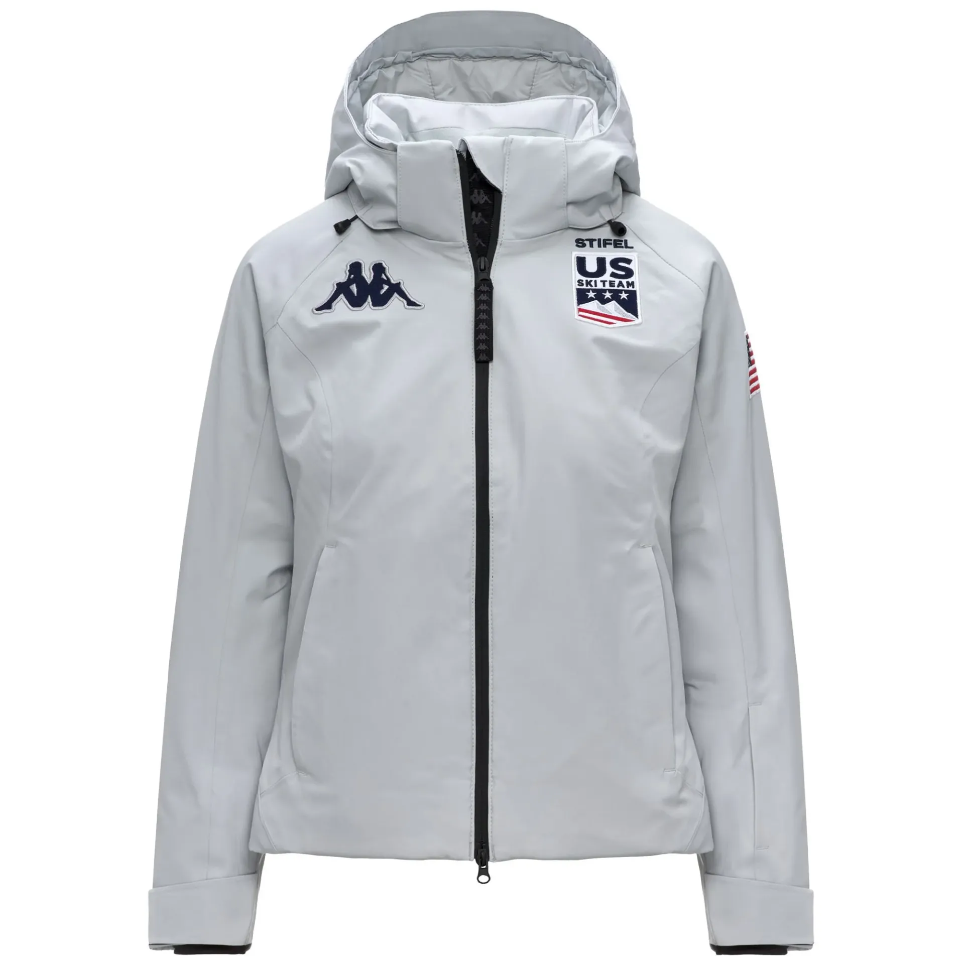Dettagli distintivi includono logo Omini e personalizzazioni US Ski and Snowboard Team.